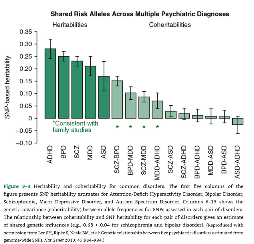 • Lee SH, Ripke S, Neale BM, et al: Genetic relationship between five psychiatric disorders estimated from genome-wide SNPs. Nat Genet 2013;45:984-994.