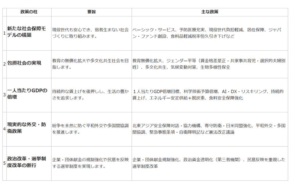 中道改革の旗印となる「政策5本柱」
