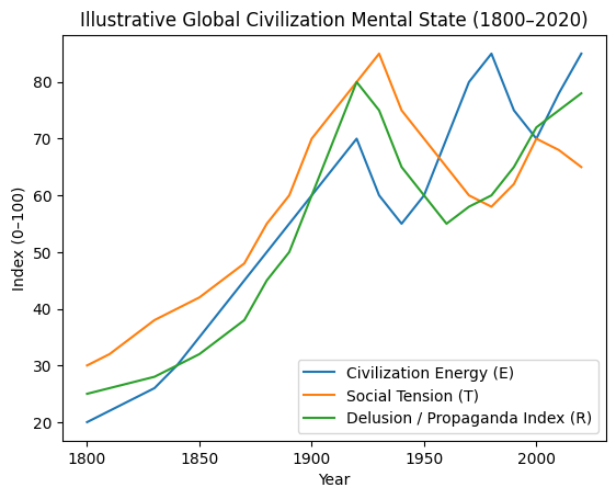 いま 文明精神状態の概念グラフ(1800–2020) を作りました。