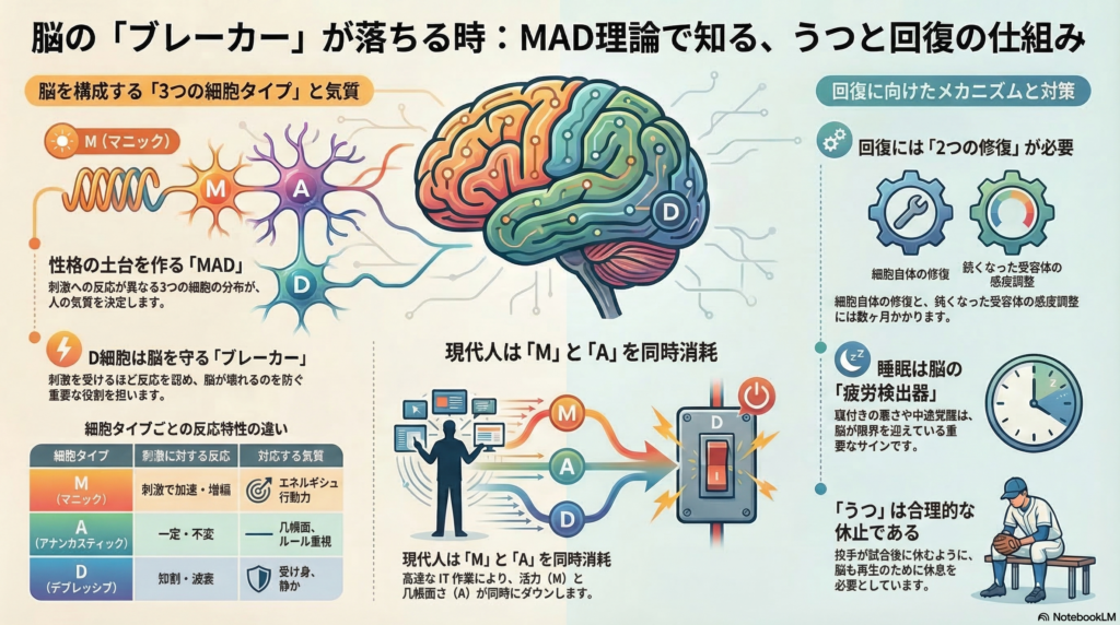 脳の「修理中」を正しく理解する:生物学的回復プロセス解説 MAD理論による細胞タイプ 2026031710