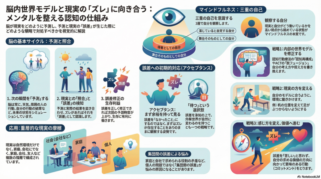 脳内の世界モデルと現実のズレは、私たちが排除すべき「エラー」ではなく、世界と自分をより良く適合させていくための「対話のきっかけ」です。
